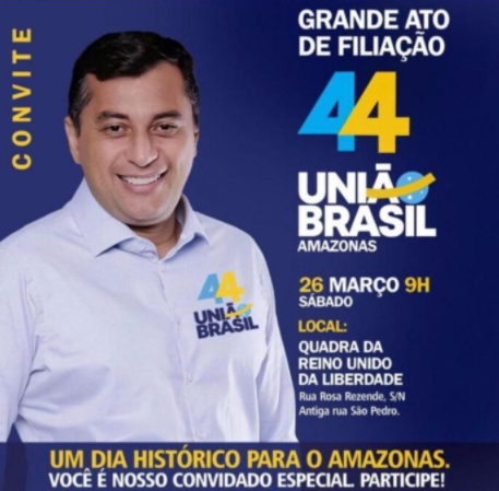 Um grande ato de filiação ao partido União Brasil acontece neste sábado (26), o evento foi confirmado pelo governador do Amazonas, Wilson Lima.