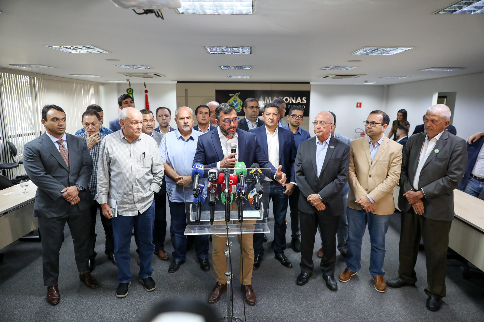 O governador Wilson Lima anunciou, nesta quarta-feira, 24/07, medidas fiscais e ações judiciais para fortalecer a indústria, comércio e serviços, minimizando os impactos da estiagem nas atividades econômicas do estado. O objetivo do Governo do Amazonas é garantir a competitividade desses setores devido às dificuldades logísticas no transporte de produtos e a arrecadação de tributos como o Imposto sobre Circulação de Mercadorias e Serviços (ICMS), diante da seca que já atinge os rios da região.