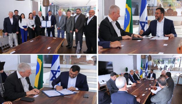 Wilson Lima recebe embaixador de Israel no Brasil e assina acordo de cooperação técnica