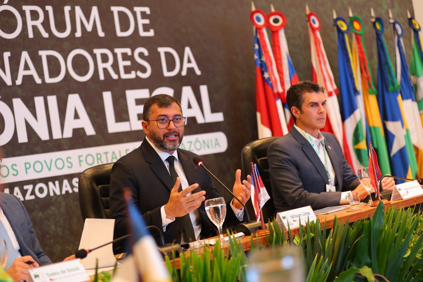 “Eles (os governadores) chegam aqui no estado do Amazonas no momento em que a gente enfrenta uma situação complicada de estiagem extrema, de pessoas no estado do Amazonas que necessitam de ajuda humanitária, tanto de alimento quanto de água, enfrentam dificuldades por conta dos rios na atividade econômica. Há a questão do desmatamento, das queimadas. Então esse é um momento importante para a gente discutir soluções e entender aqueles pontos que são convergentes”, destacou o governador Wilson Lima, anfitrião do evento na capital.