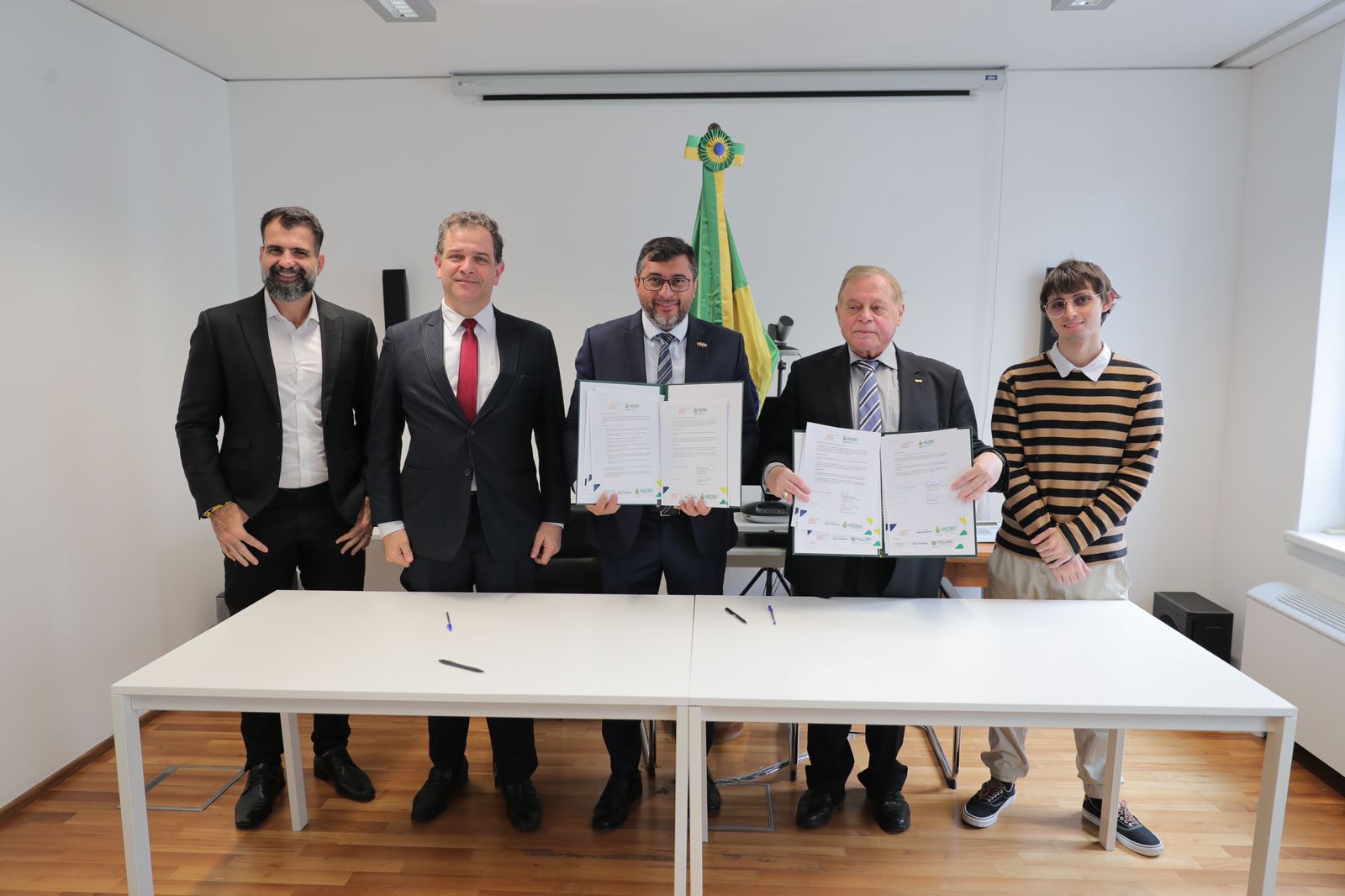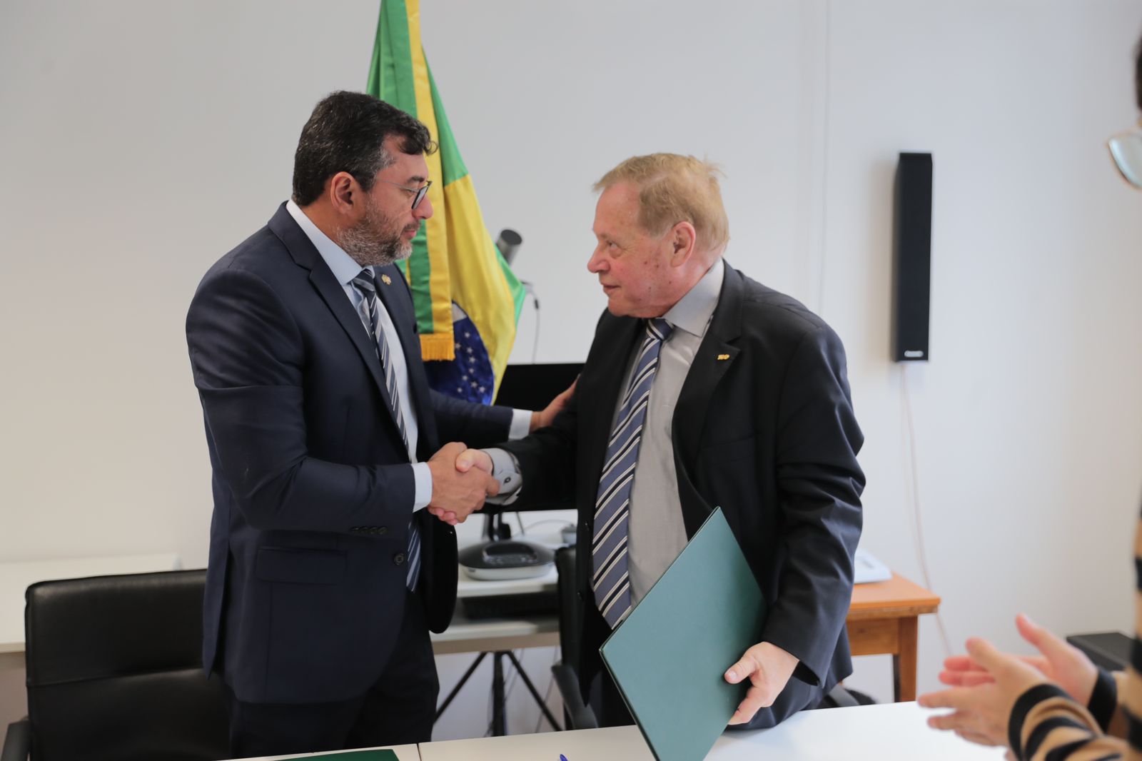 O governador do Amazonas, Wilson Lima, assinou, na quarta-feira (03/05), um memorando de entendimento com o Conselho Mundial de Energia, que prevê cooperação para troca de experiências e tecnologias. A ação integra a agenda de visita à capital da Áustria, Viena, onde o governador também visitou, hoje, a Câmara de Comércio Brasil-Áustria.