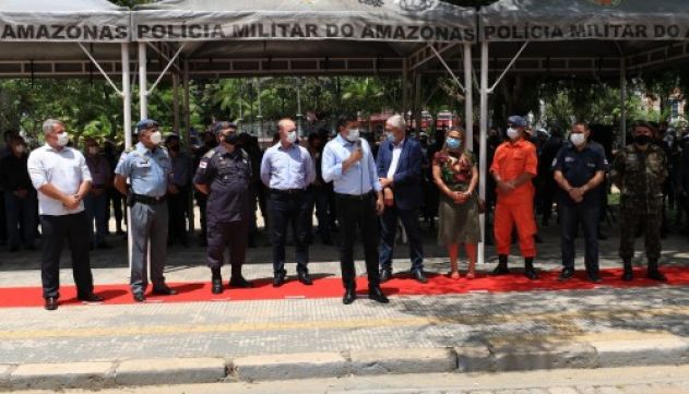 O governador Wilson Lima lançou, nesta segunda-feira (22/11), na praça Heliodoro Balbi, no Centro, zona sul de Manaus, a operação Natal da Esperança, que vai reforçar o policiamento ostensivo nas ruas da capital e intensificar a atuação preventiva da Polícia Militar do Amazonas (PMAM) em todo o estado durante o período de final e início de ano.