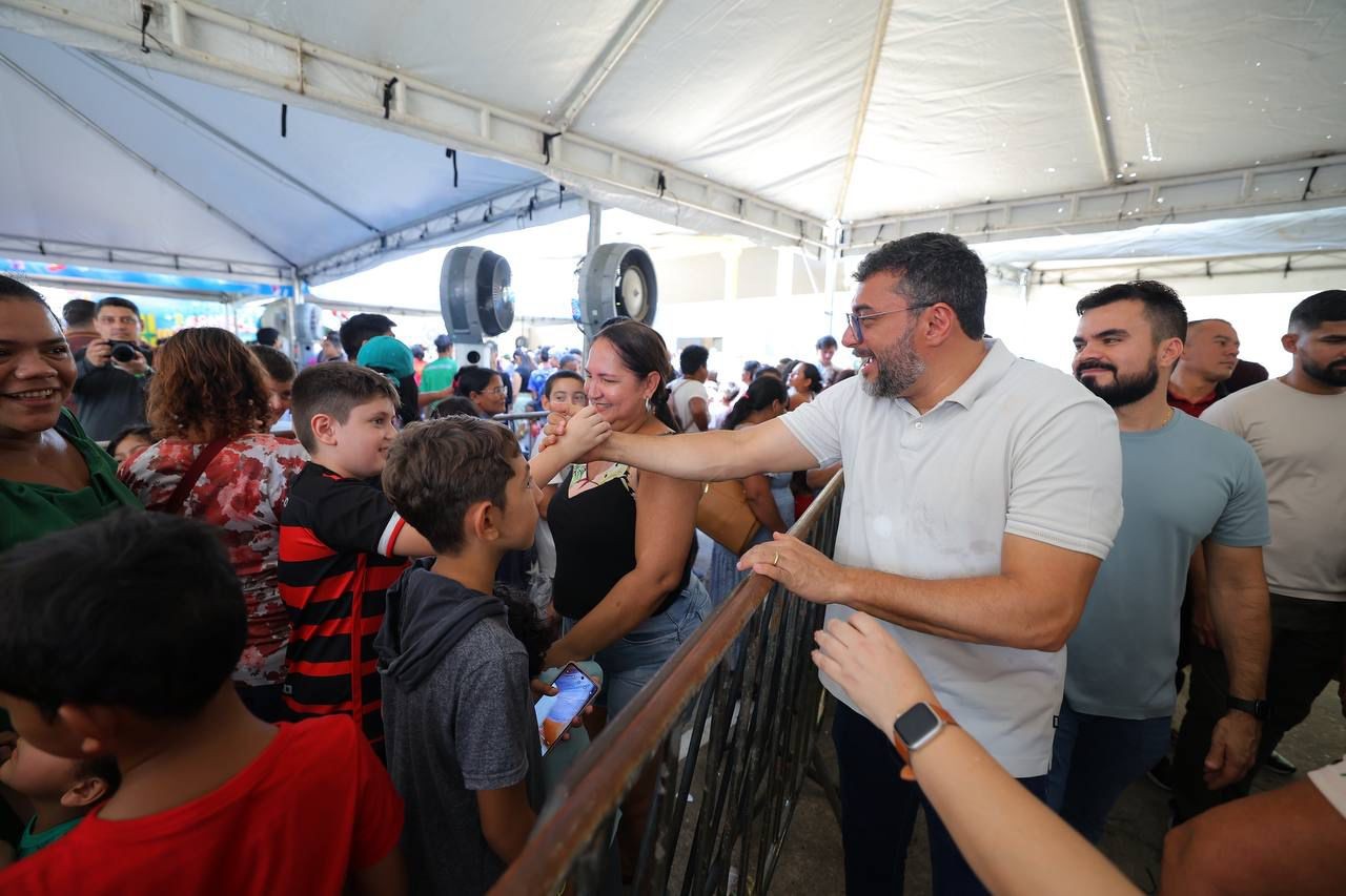 O governador Wilson Lima levou, neste sábado, 11/10, a 24ª edição do Programa Governo Presente ao Ceti João dos Santos Braga, no bairro Nova Cidade, zona norte de Manaus. Em edição especial que marcou a véspera do Dia das Crianças, o evento contou com entrega de brinquedos pela campanha “Doe Brinquedo e Ganhe Sorrisos 2025”, além de atendimentos de saúde voltados às mulheres, incluindo exames de mamografia e ultrassonografia na Carreta da Saúde.