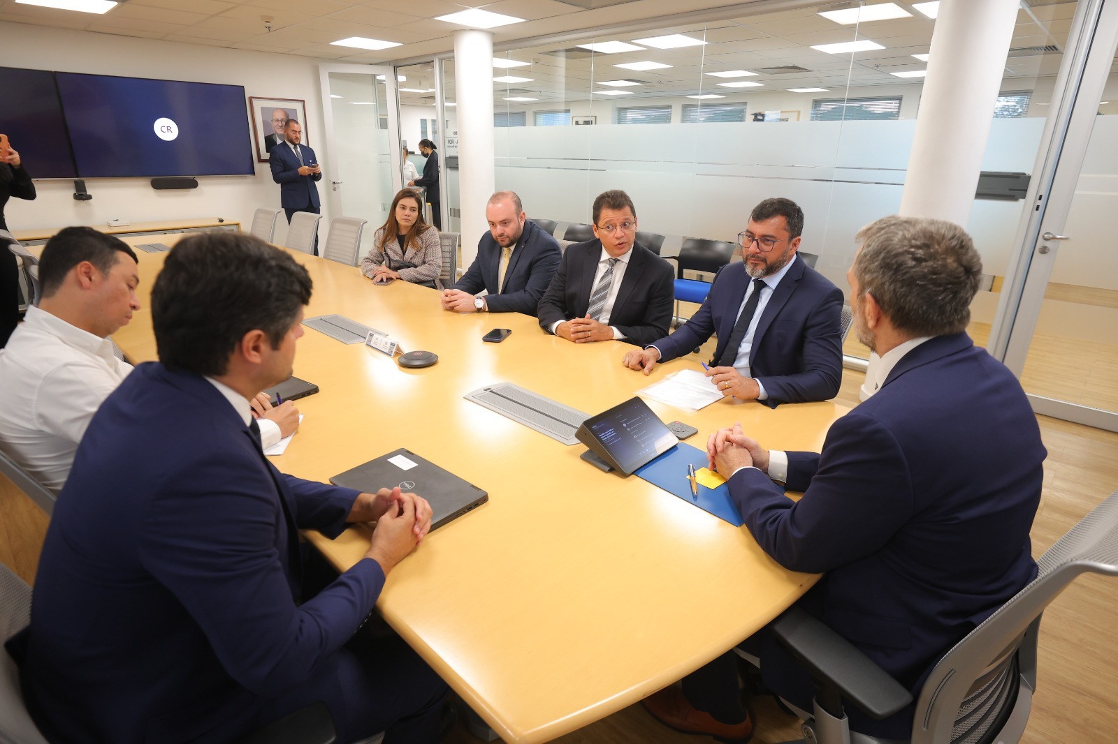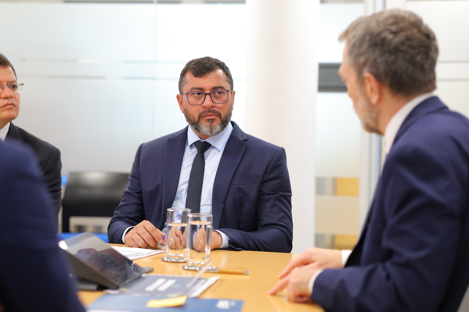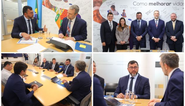 Wilson Lima esteve acompanhado dos secretários estaduais Fausto Júnior (Desenvolvimento Urbano e Metropolitano), Marcellus Campelo (Unidade Gestora de Projetos Especiais) e Inês Carolina Simonetti (Relações Federativas e Internacionais).