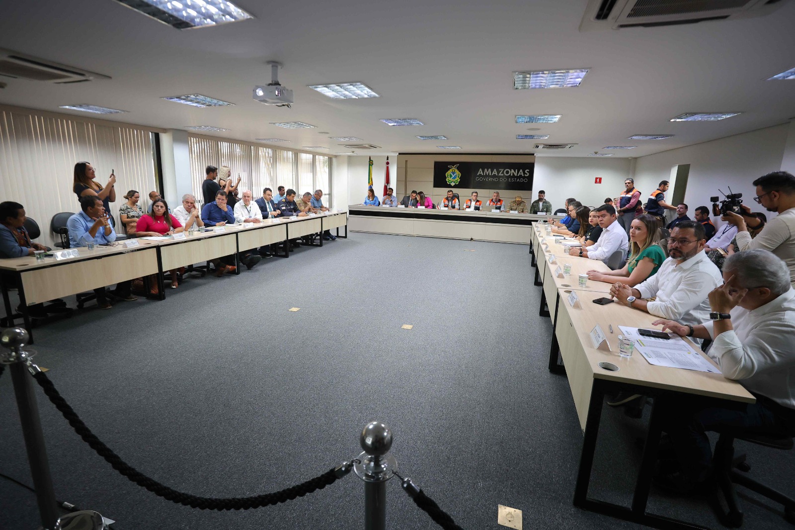 O presidente do Comitê Intersetorial de Enfrentamento à Situação de Emergência Ambiental, governador Wilson Lima, reúne o colegiado nesta terça-feira, 17/10, e apresenta a imprensa o balanço das ações coordenadas pelo Estado para combater os efeitos da estiagem e das queimadas.