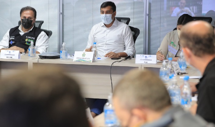 “O objetivo da nossa reunião aqui foi para tratar de questões relacionadas à pandemia, sobretudo essa questão da Ômicron, que é algo que tem preocupado o mundo e sobretudo o estado do Amazonas. Então eu chamei aqui os prefeitos para que a gente pudesse entender algumas limitações que estão dificultando esse processo de vacinação, para que a gente possa avançar e também dar condições à população de fazer testagem”, afirmou Wilson Lima.