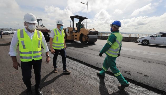 Na ponte, a intervenção tem início na cabeceira, contemplando um total de 9,97 quilômetros. Para a recuperação de todo asfaltamento, a Seinfra faz a reciclagem de asfalto antigo e adição de outros componentes para a formar a base do novo pavimento.