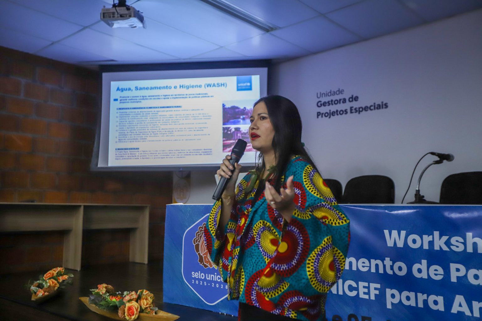Representando o titular da Sedurb, Marcellus Campêlo, a coordenadora de projetos do Unicef na Sedurb, Reny Moita, destacou que o workshop integra as estratégias de engajamento do Selo Unicef Edição 2025-2028, cujo objetivo é promover os direitos e o bem-estar de crianças e adolescentes. “Este é um momento muito importante para a troca de experiências, o compartilhamento de lições aprendidas e o fortalecimento de parcerias. Nesta edição, o Amazonas alcançou 100% de adesão dos 61 municípios, um marco histórico desde a chegada do Unicef ao estado”, afirmou.