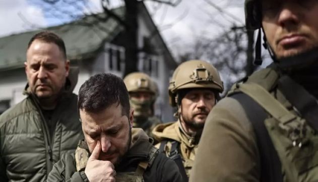 Após um longo período no centro de Kiev, capital do país, Zelensky deixou brevemente a cidade para visitar Bucha. Após a visita ele disse que o massacre irá atrasar o processo de negociação de paz com a Rússia.