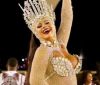 Viviane Araújo posa com barriguinha de grávida à mostra em ensaio de escola de samba