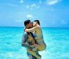 Cleo troca beijões com o marido no mar das Maldivas