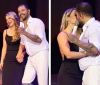 Paolla Oliveira e Diogo Nogueira trocam beijos em palco de show