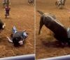 Para salvar filho que desmaiou, pai entra em arena e acaba chifrado por touro