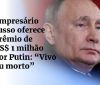 Em meio as negociações por cessar-fogo, empresário russo oferece 1 milhão de dólares por Putin: 'VIVO OU MORTO'