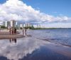 Parte da praia da Ponta Negra fica encoberta com subida do nível do Rio Negro em Manaus
