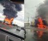 Vídeos mostram momento em que carreta pega fogo na Avenida Torquato Tapajós, Zona Norte de Manaus. VEJA AS IMAGENS
