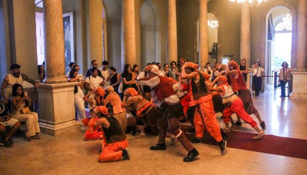 Na quarta-feira (29/04), o hall do Teatro Amazonas se transformou em palco para a apresentação especial “Esse Canto Dança”, do Corpo de Dança do Amazonas (CDA), em celebração ao Dia Internacional da Dança. O espetáculo surpreendeu o público ao romper com o espaço tradicional do palco e aproximar bailarinos e espectadores em uma experiência imersiva e sensível.