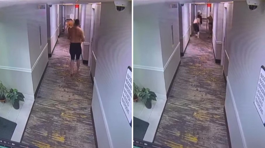 Nas imagens, o suspeito aparece caminhando atrás da vítima pelo corredor. De acordo com a mulher, ele tentou levá-la à força para o banheiro nas proximidades. Ela afirmou ainda que o homem estava hospedado no mesmo resort acompanhado da esposa e de dois filhos.