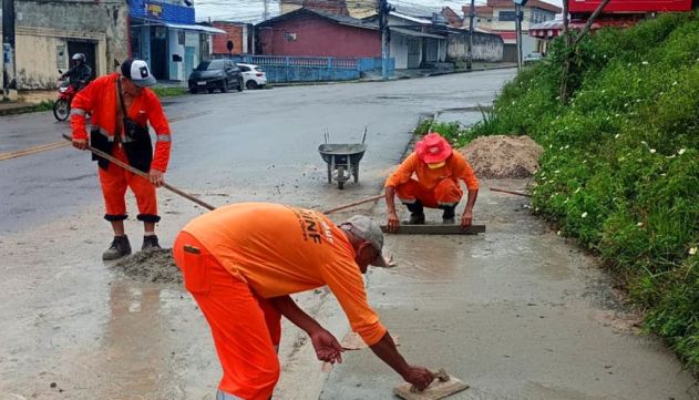 As equipes atuaram na retirada de entulhos acumulados na calçada e, em seguida, executaram a reconstrução do passeio público, que estava comprometido, utilizando materiais adequados e resistentes. A intervenção faz parte de um conjunto de serviços que já haviam sido realizados no local, como a recuperação da drenagem profunda, aterro, implantação de meio-fio e sarjeta. O secretário municipal de Infraestrutura, Madson Rodrigues, destacou que o trabalho vai além da estrutura física e impacta diretamente o dia a dia da população.