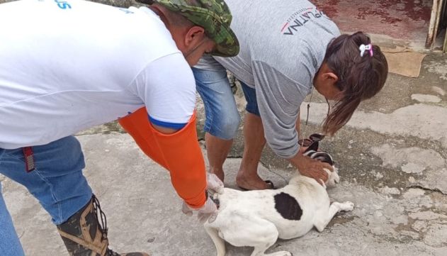 Vacinação de cão em zona rural de Manaus